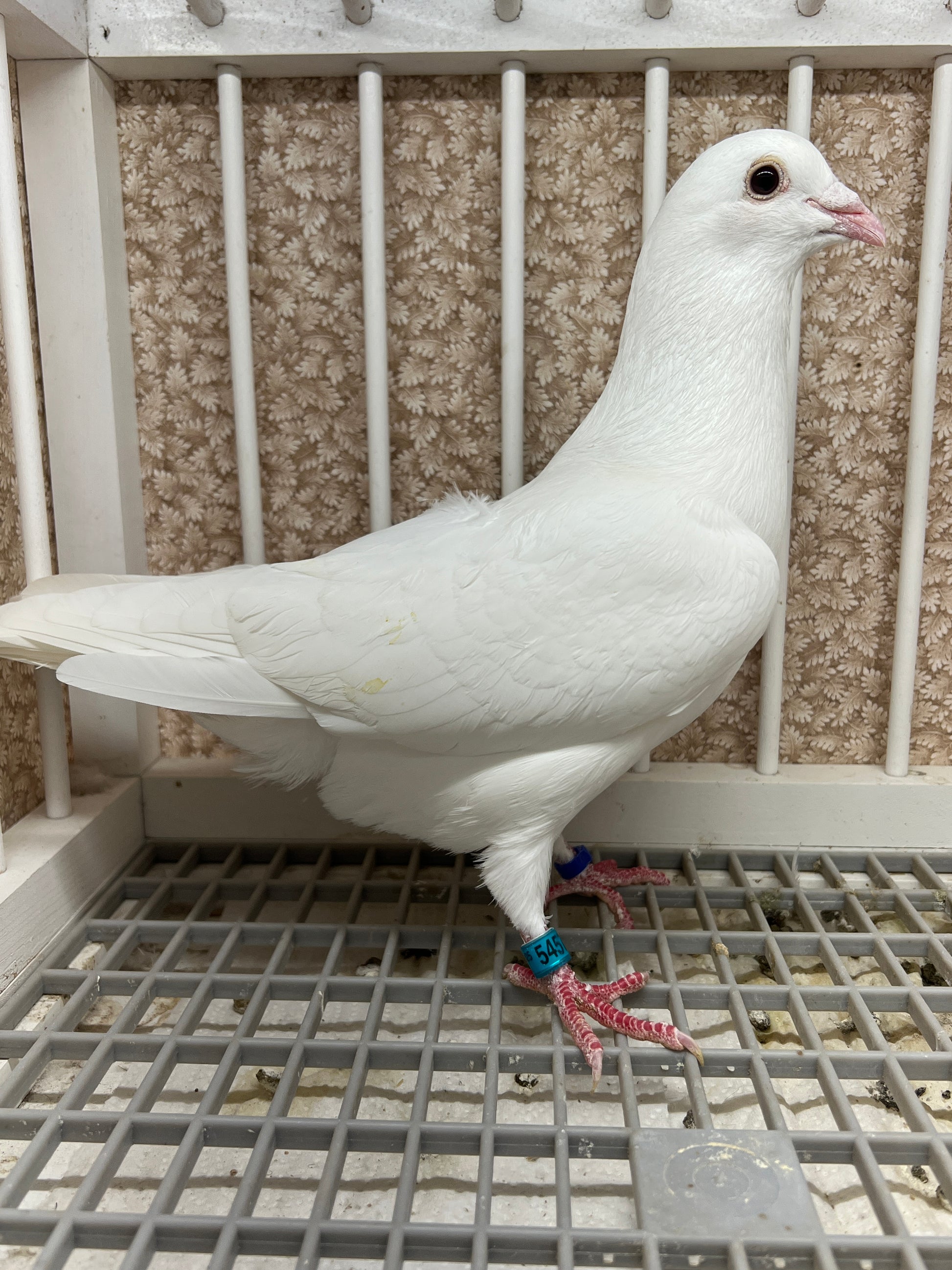 Possibly a Cock, this is a great choice for home flying, white dove releases, or racing! Very durable with exceptional feather quality. Past costomers have reported they just don't get lost!